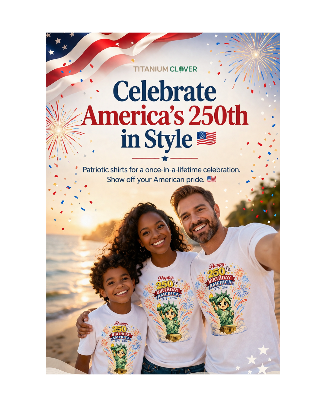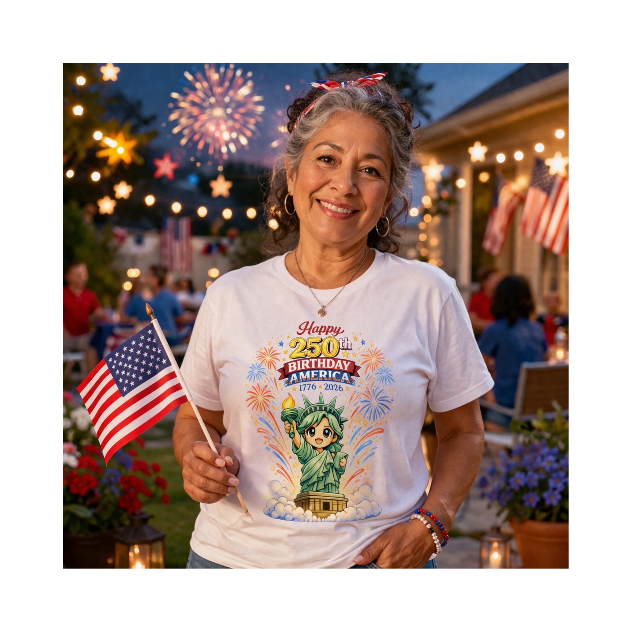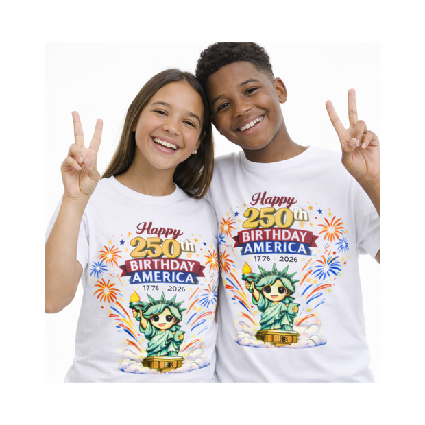Our patriotic shirts are designed to show off your American pride - perfect for family photos, BBQs, parades, and fireworks. The America 250 Collection includes styles for toddlers, kids, teens, and adults, making it easy to find the perfect look for this once-in-a-lifetime celebration.