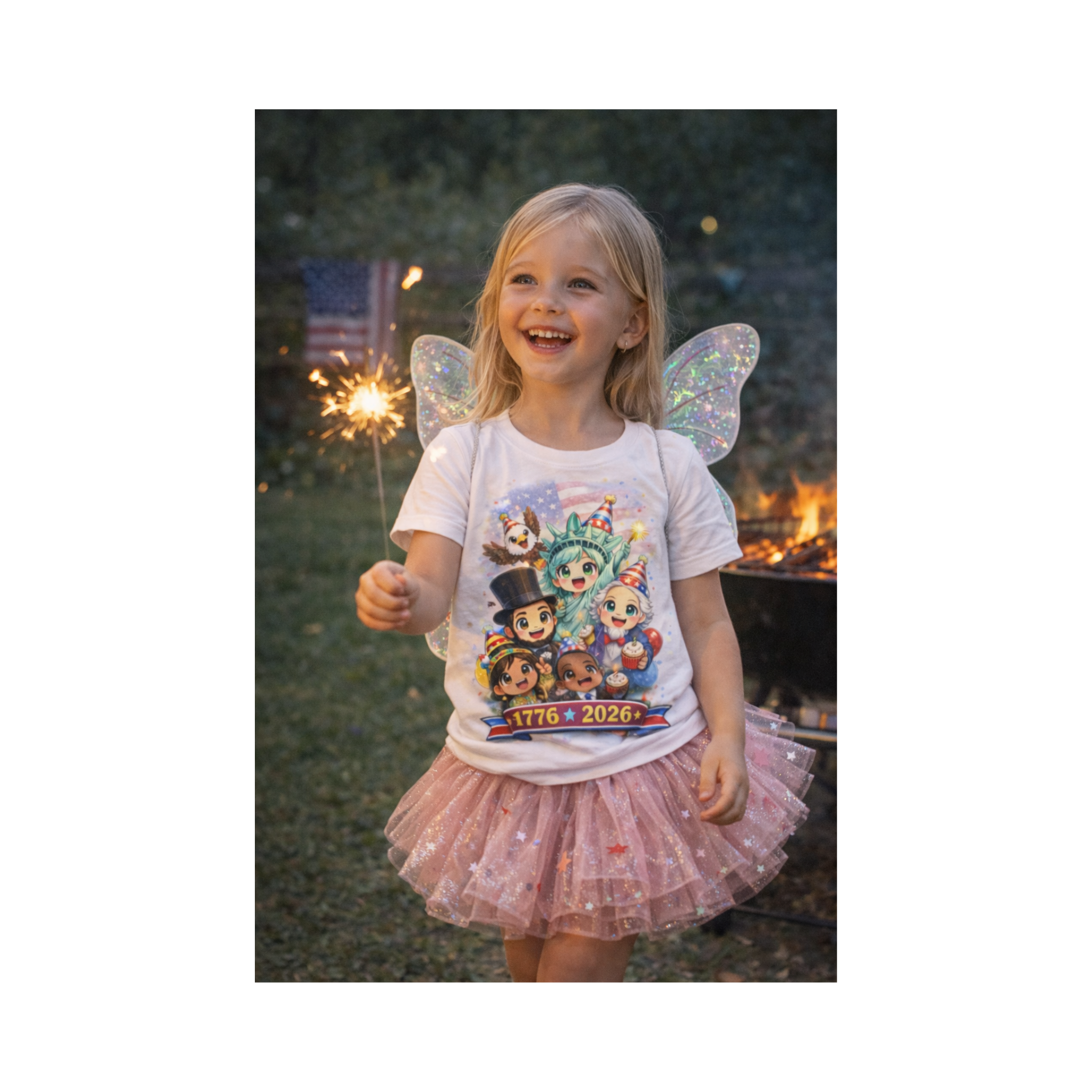 Whether worn for fireworks, parades, parties, or simply showing American spirit, this design creates smile while honoring 250 years of freedom.